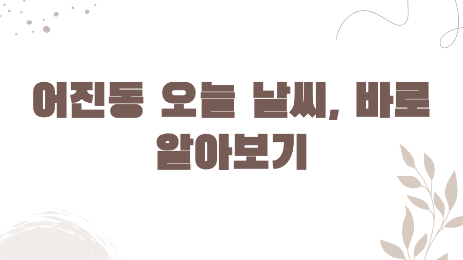 이번 글에서는 어진동의 실시간 날씨부터 시작해서 오늘, 내일, 그리고 앞으로 다가올 한 주간의 날씨 예보까지 꼼꼼하게 짚어드릴 예정입니다.